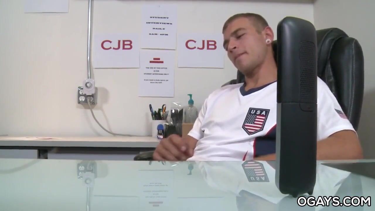 While listening to the deep voice coming from the phone Alexander is giving his answers, and all the while he strokes and plays with his massive dick.