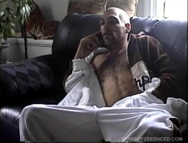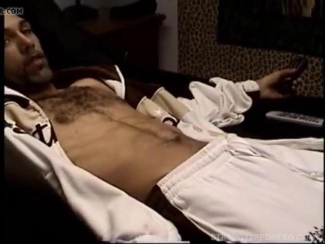 Enrique stops by looking very thuggish, and wanting to get his nut off. He talks with his girlfriend on the phone as Vinnie starts playing with his big dick. When they move into the bedroom, Vinnie brings him to the brink a few times and then decides to have a cockfight. As he rubs their dicks together, Enrique shoots big globs of cum all over his stomach. Enrique shows some appreciation by sucking on Vinnie's cock.