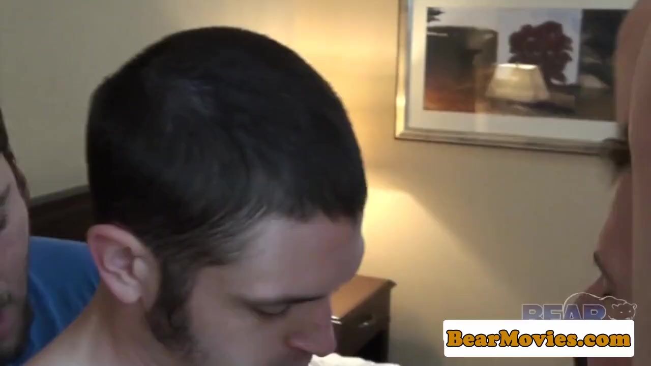 Bear assfucking tattooed bottom in trio before jerking out cumshot