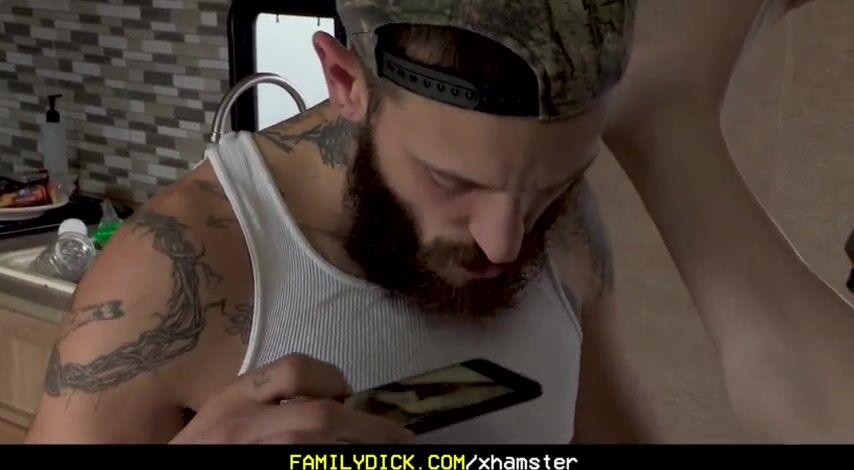 This annoying teen likes to prank his tatted-up daddy for attention. But when he gets caught, he has to suck his hung step step dad’s fat dick on camera.