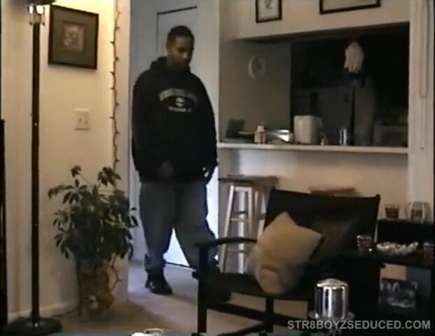 Stripped naked on the sofa, straight boy Tiggr feeds me his black cock until he plasters my face with his load. He remains rock hard so I decide to scoot up next to him and compare cock sizes. To my s