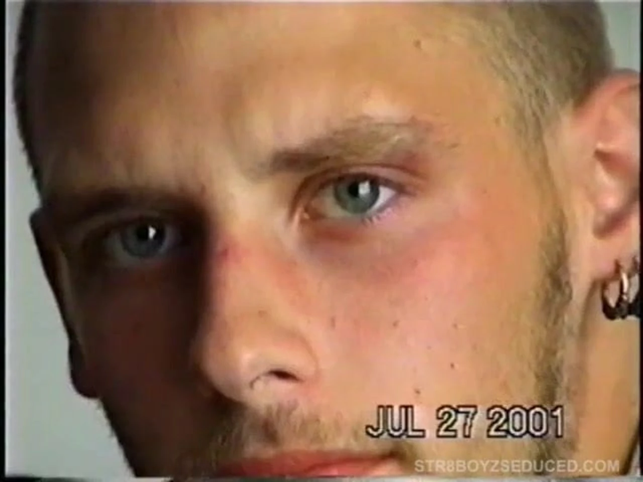 Straight boy Buzz is 21 years old and married. When he strips down to his shorts we get to see his collection of tattoos. After Buzz strokes his cock for a while he lets me lube and measure it and whe