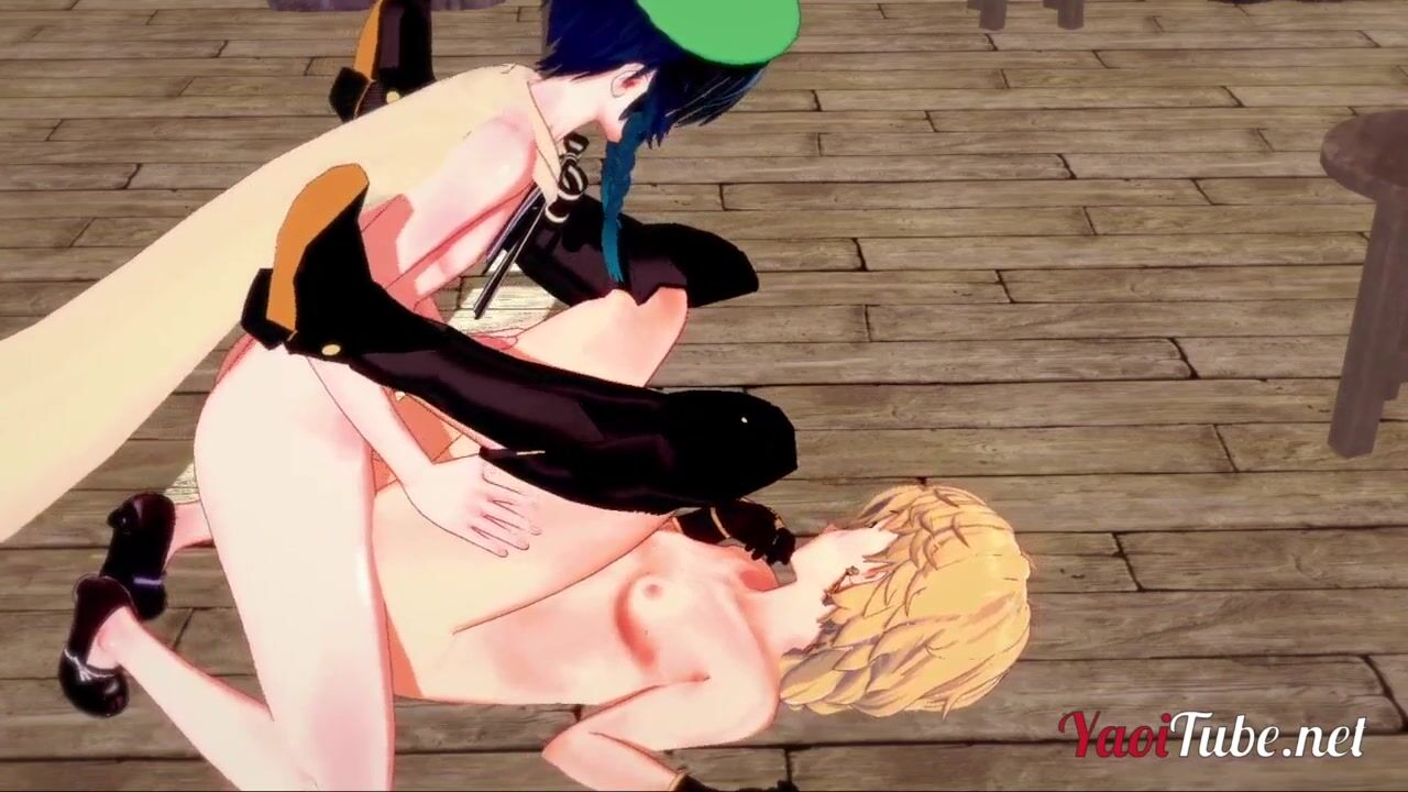 Genshin Impact Yaoi Venti Having hard sex with Traveller in a Pub Suck Venti's dick and cums in his ass