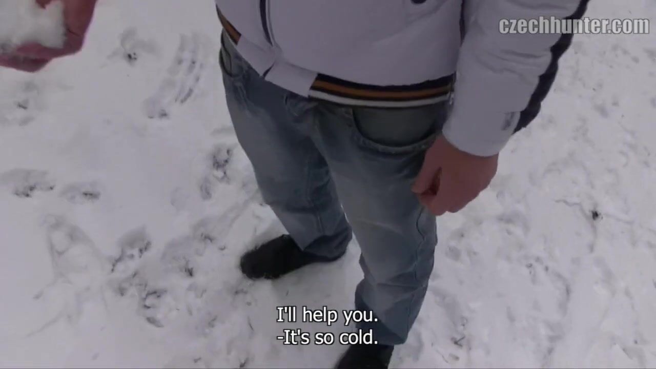 CZECH HUNTER 395 - Cute Hunk Whips Out His Dick In The Snow Then Goes All In