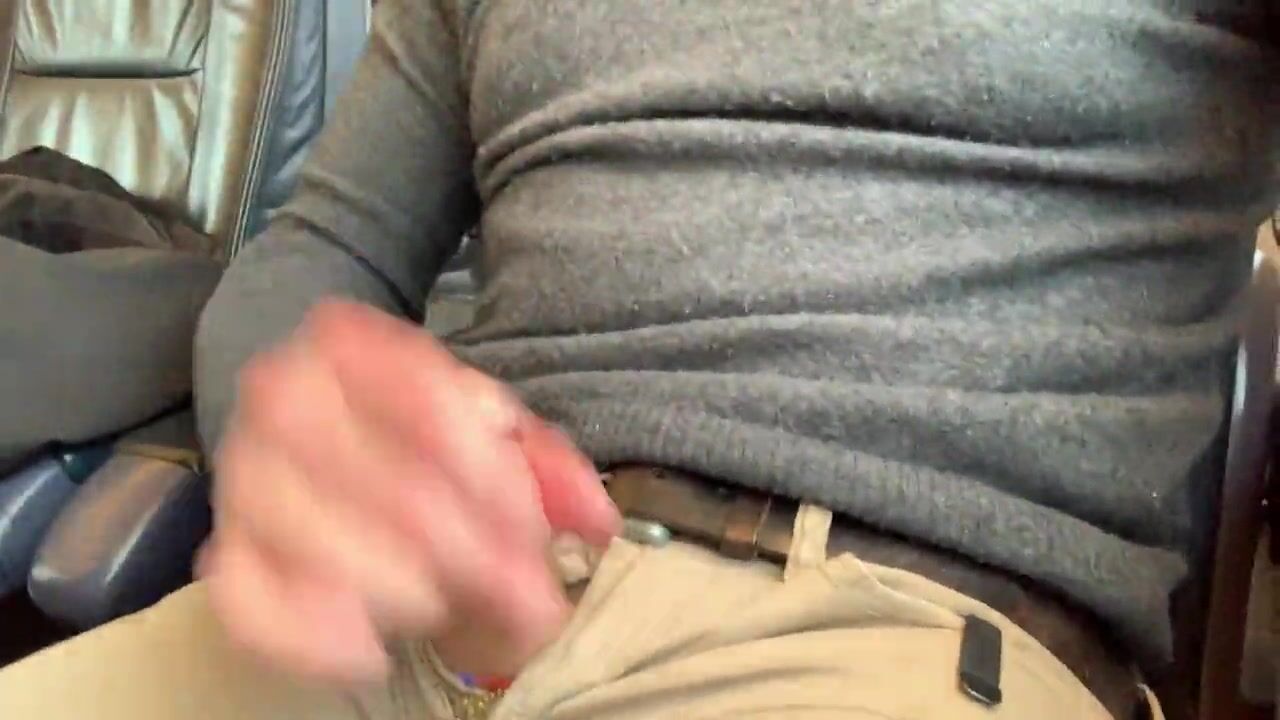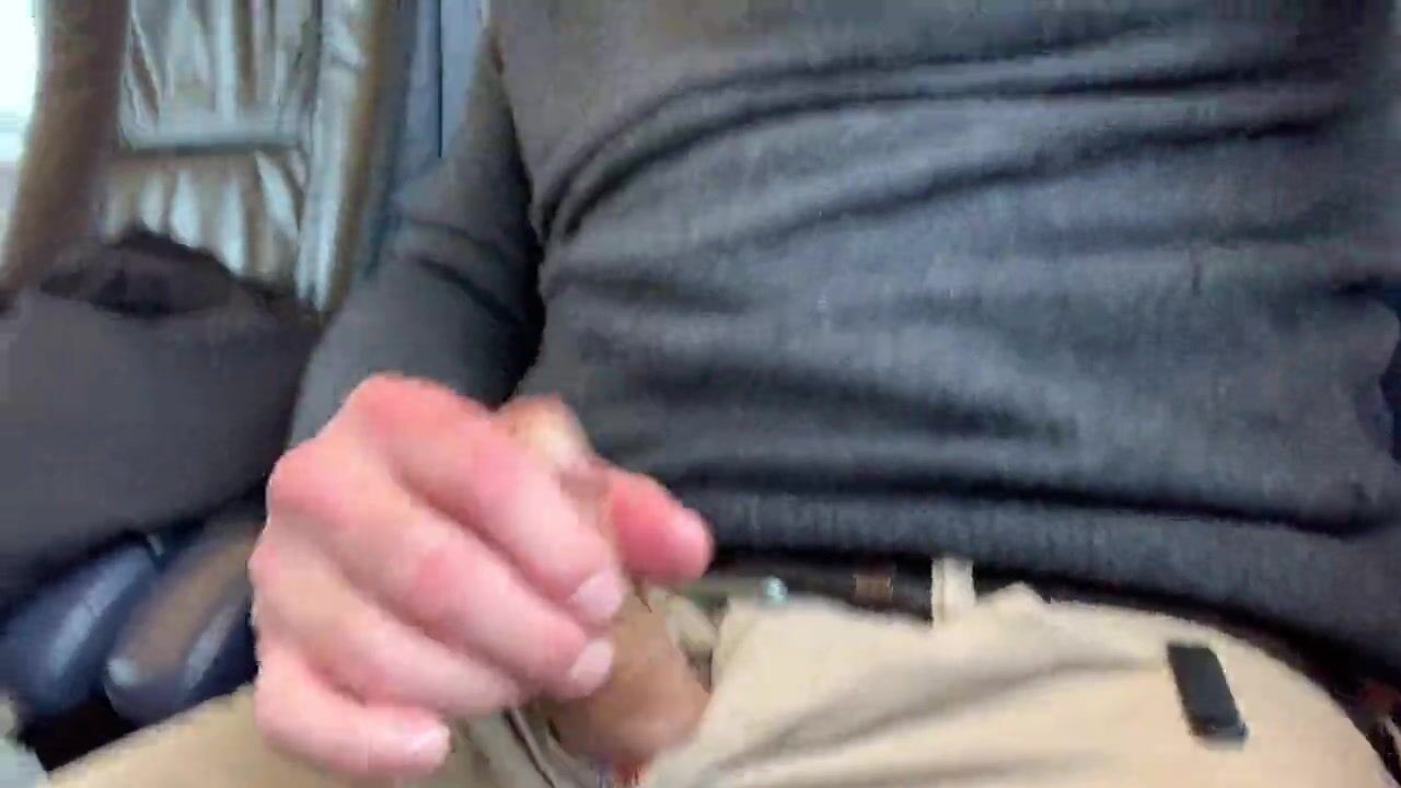 I had a hard boner that would not go down, so when I had a chance on this empty train car to empty my cock, I pulled out my hard cock and started jerking off. I just realized I had cum on my sweater!