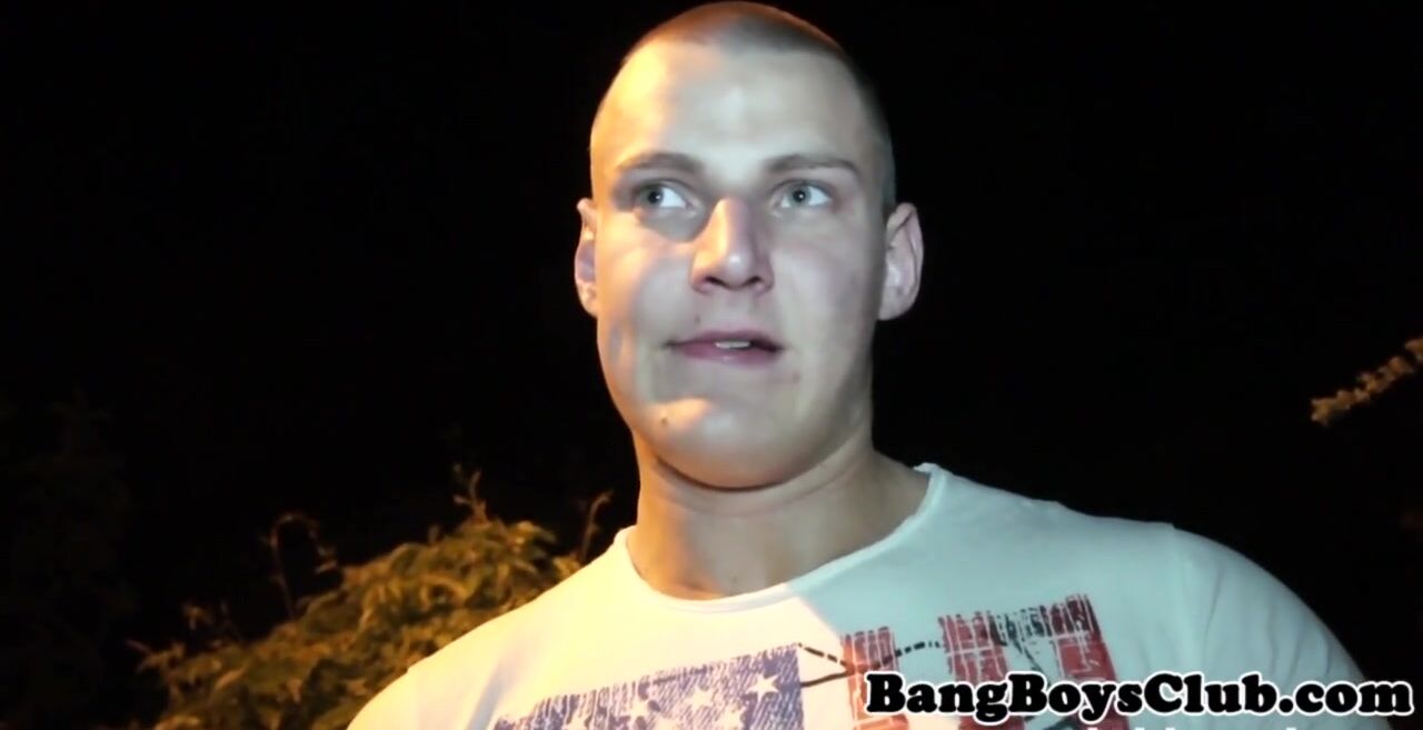 Muscular stud sucking dick outdoors before being fucked doggystyle