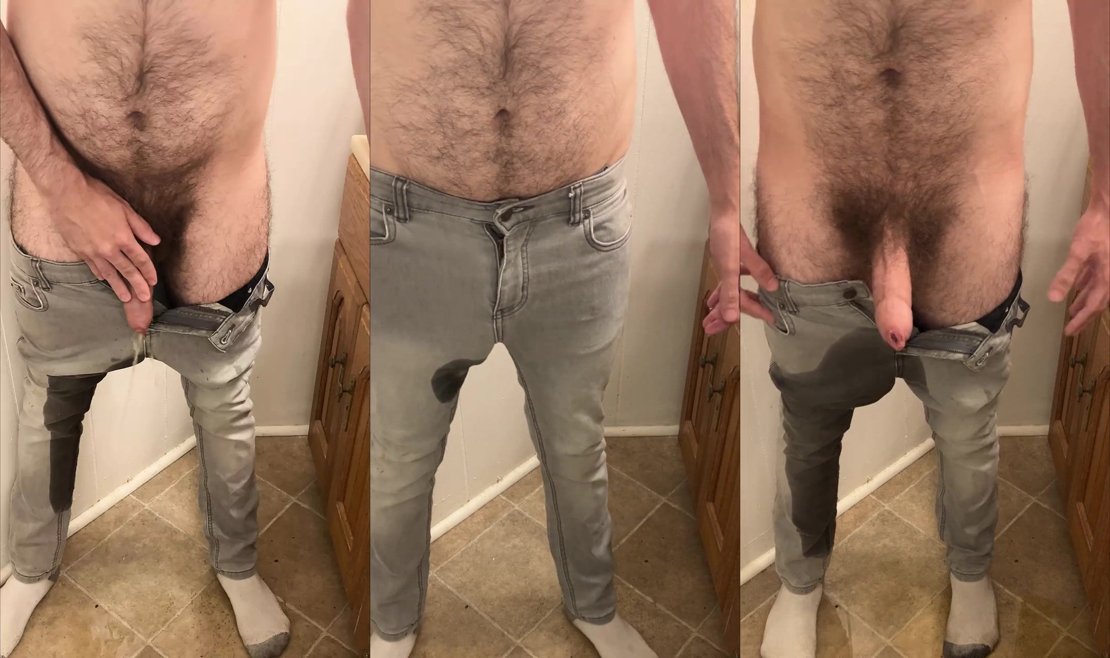 Desperation jeans wetting with Charles Dickenballs - pissing myself, then spraying pee all over the floor with a hard-on