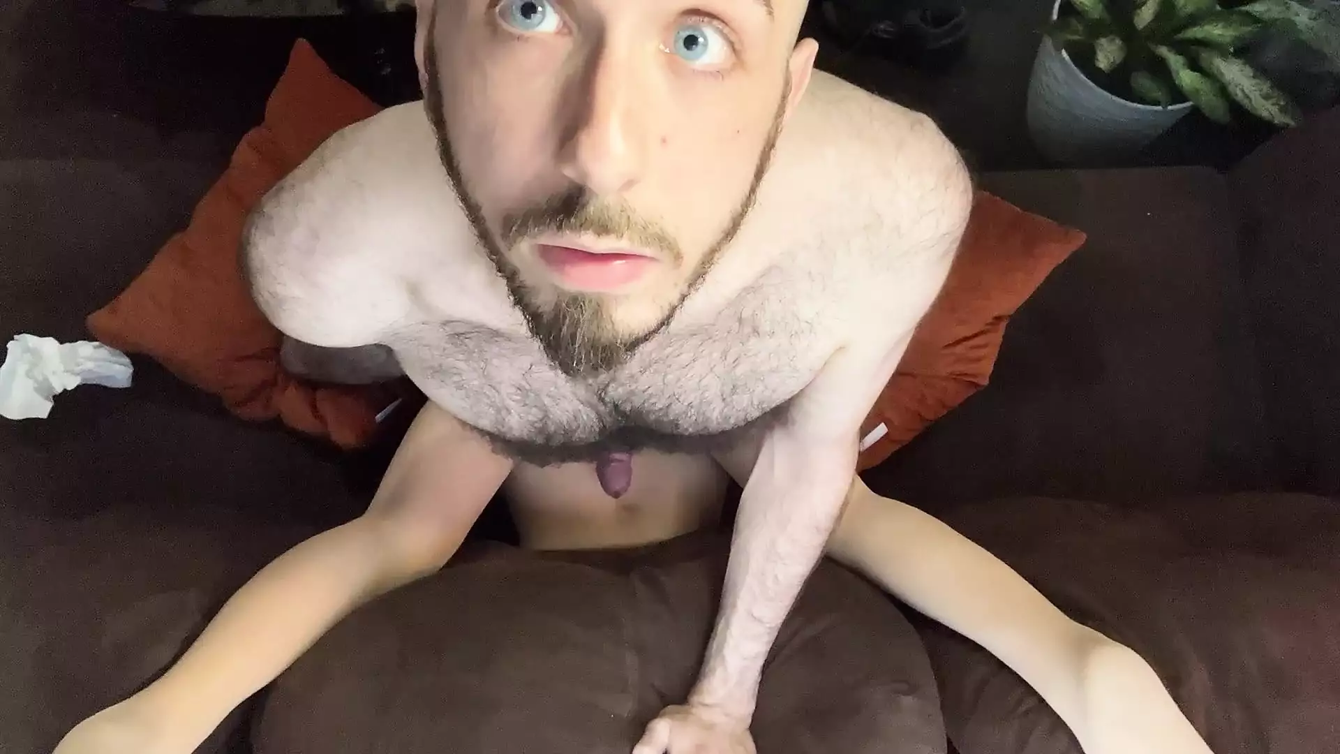 Very hairy uncut white dude with blue eyes fucking bottom-half sex doll with her legs in the air