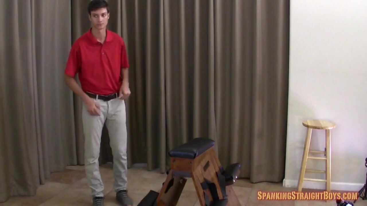 Straight boy Ryan, 19, comes back for his second spanking, and ends up being the first boy on our site to get hard during his spanking.