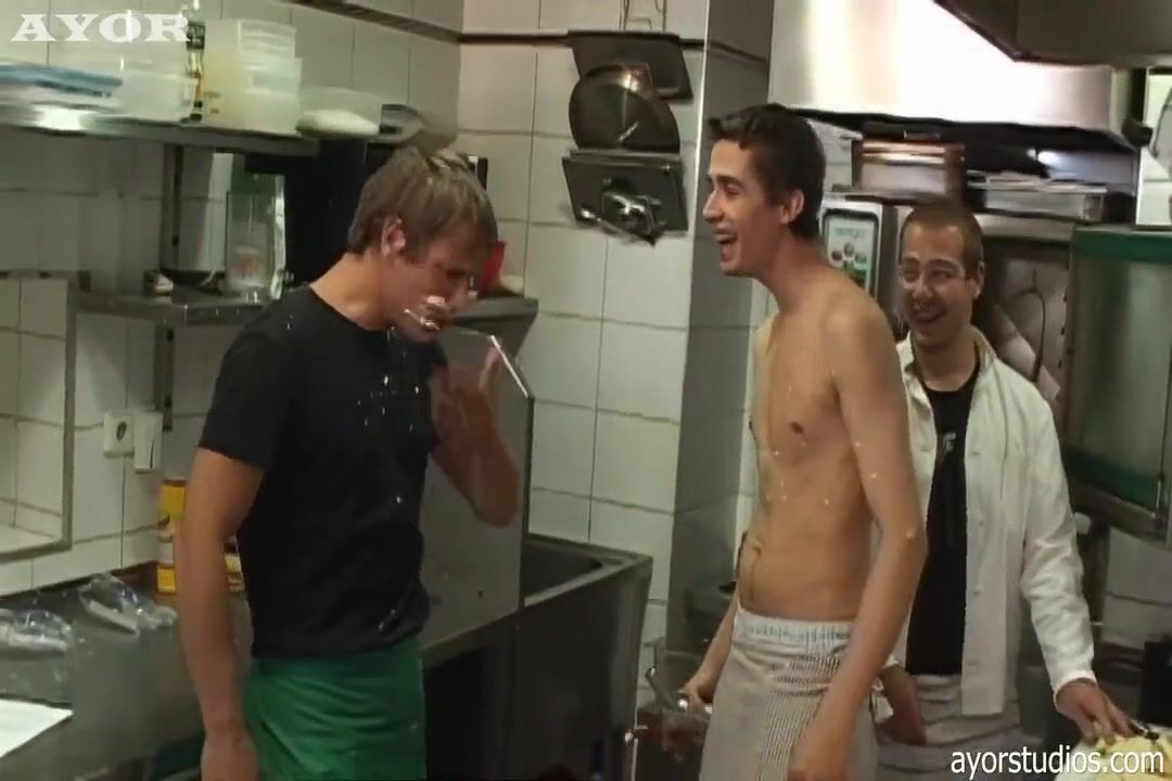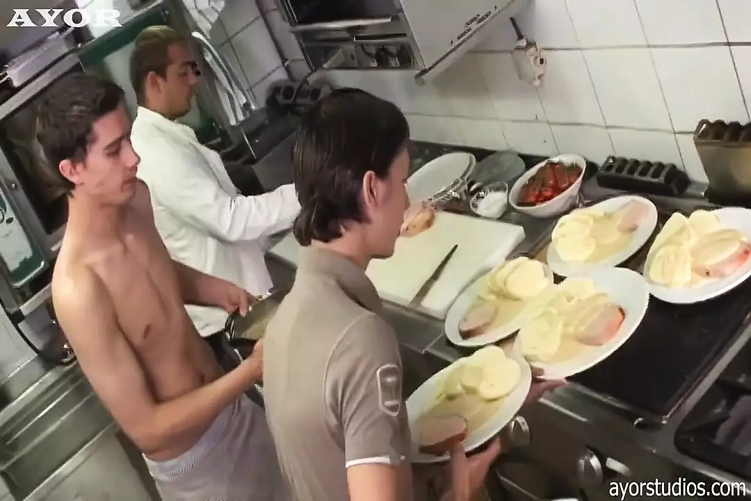 It’s hot and sweaty in the kitchen; but it gets even steamier once these two lads are out of their workwear and giving each other’s dicks an eager gobble to reach a sticky climax!