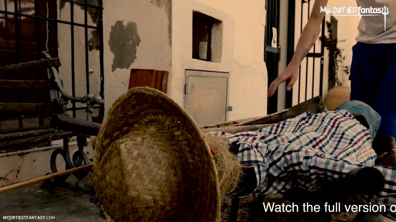 A hot and dirty farmer using his scarecrow for blowjobs and anal pleasure