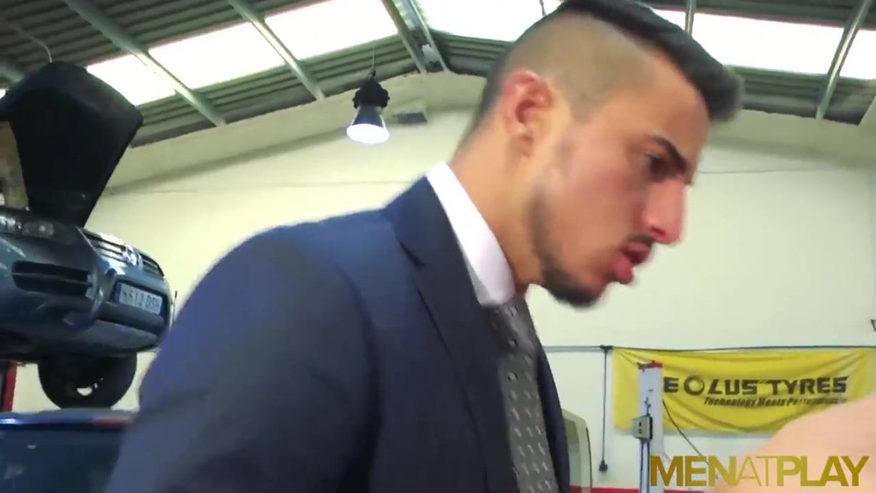 Tattooed athletic stud Sunny Colucci is seduced by dominant businessman in a suit Klein Kerr, slowly making out and leading to wild anal fucking!