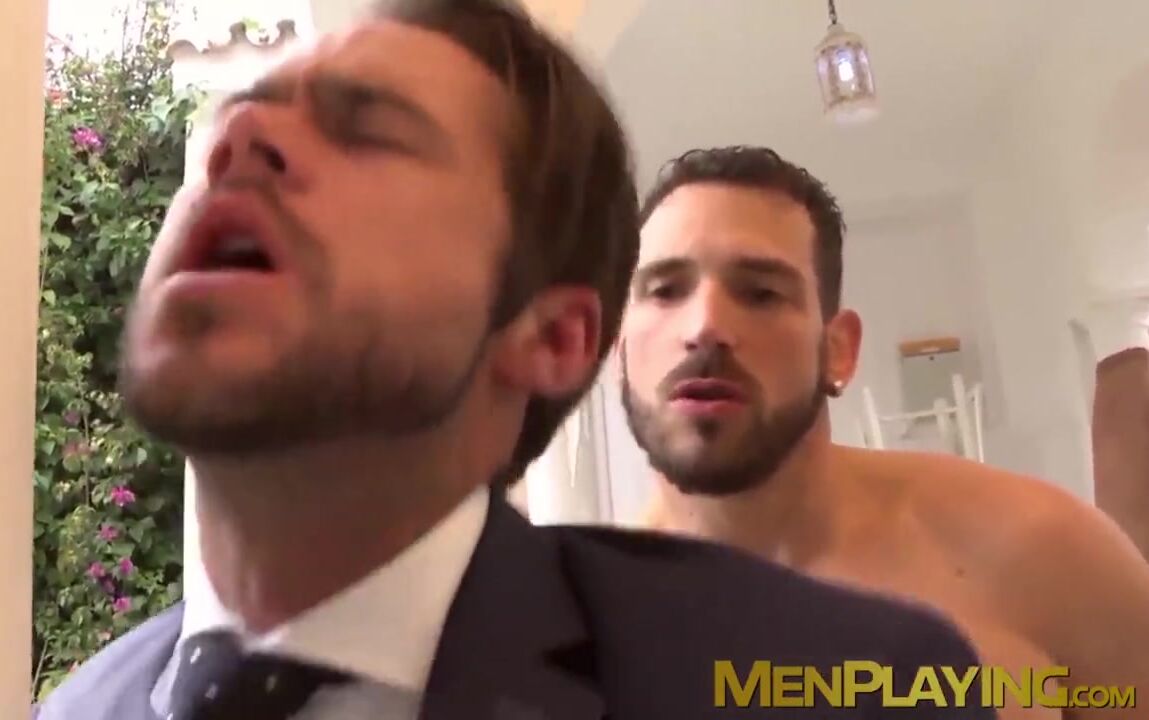 Classy and beautiful businessmen Enzo Rimenez and Mike De Marko moan during passionate and kinky ass stretching.
