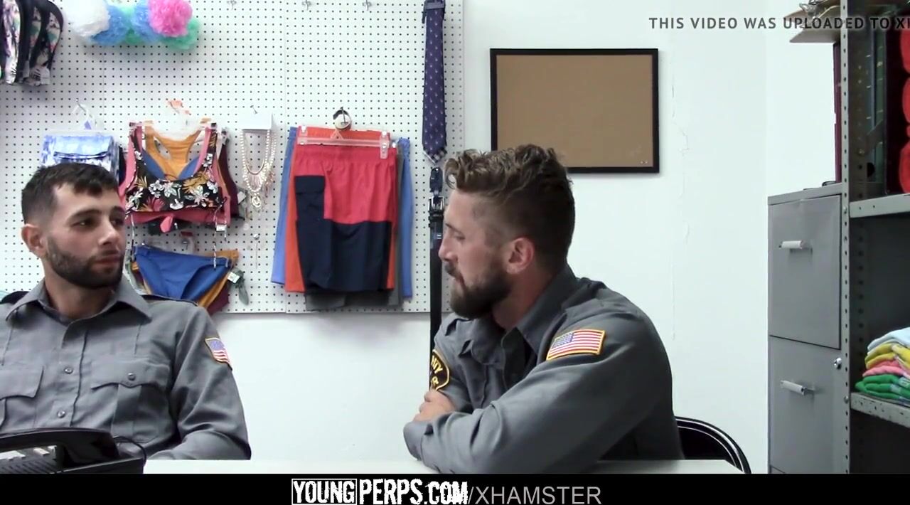 A horny Loss Prevention Officer gets caught peeping on a customer in the dressing room. To keep his coworker’s mouth shut, he chokes on his thick cock and then takes a thick cock in his asshole.