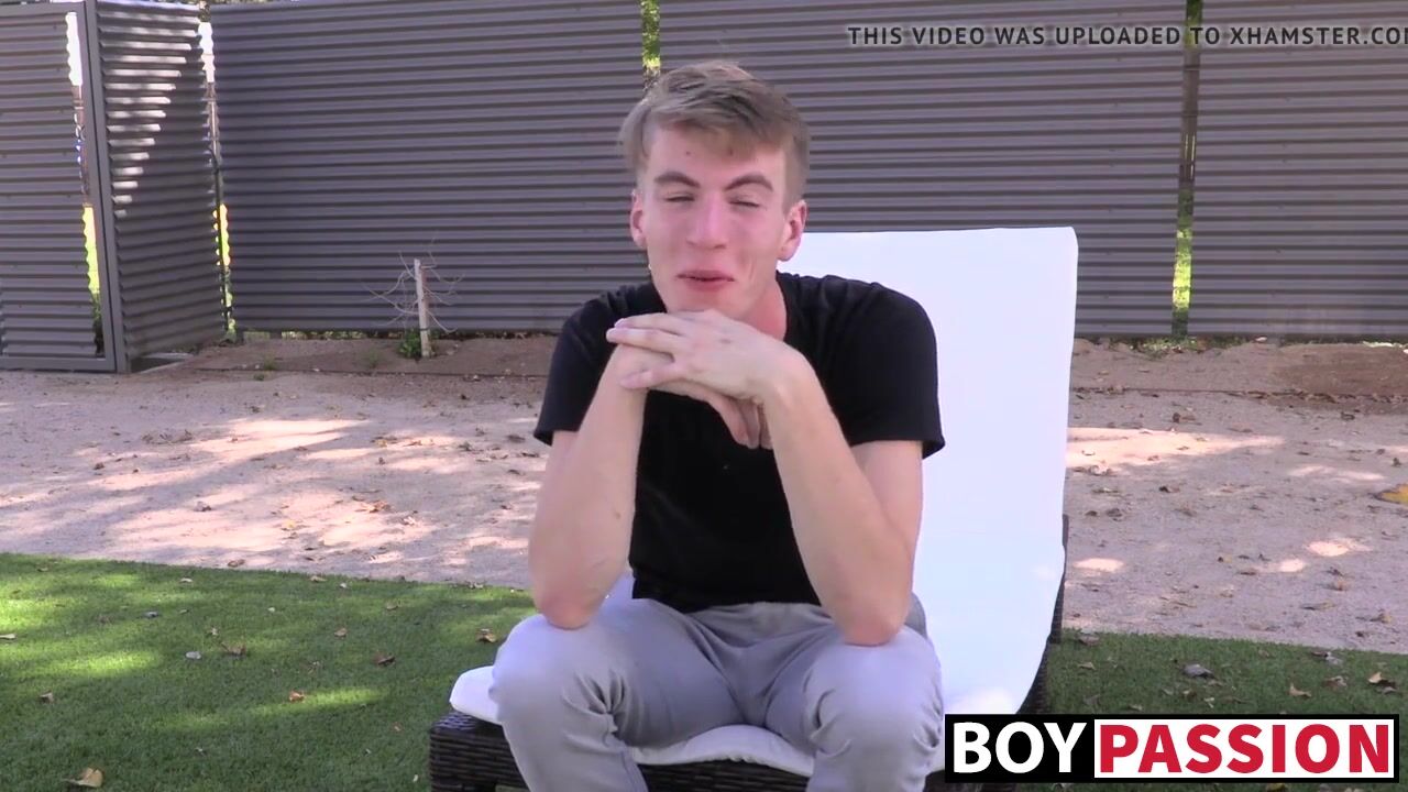 Handsome twink enjoys giving a relaxing interview before taking a shower and pleasing his big penis.