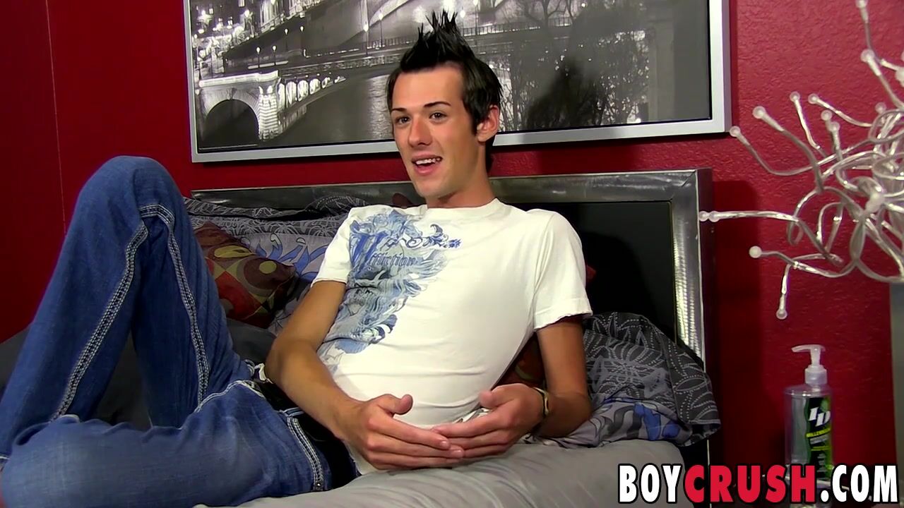 Hairy white guy with a nice cock lays on his bed and strokes his thick prick as hard as he possibly can