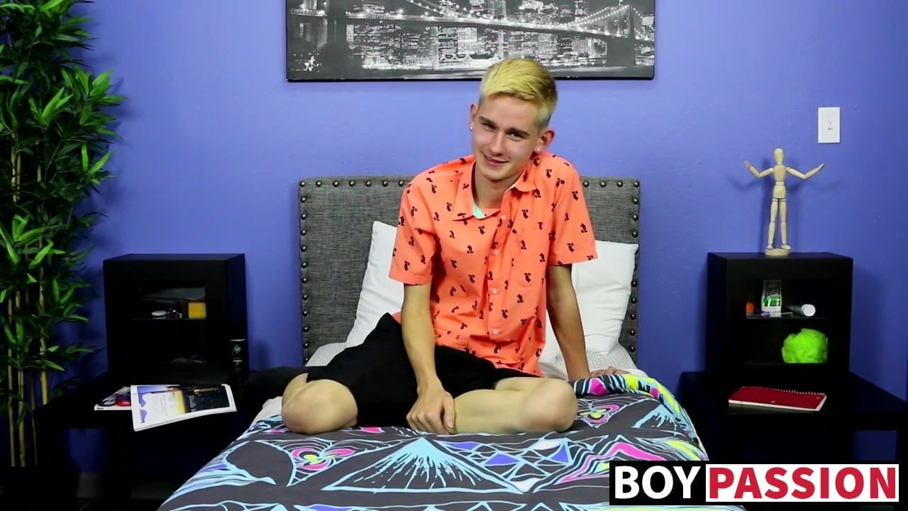 Skinny little twink with big fat dick tugs after interview! Morgan Miles is a very cute young man that loves talking about his sexual preferences!