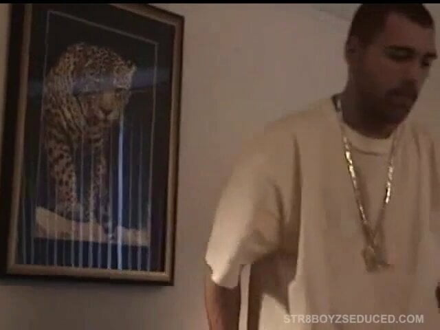 Straight boy Enrique arrives and checks out Vinnie's new porn magazines and videos as he strips naked. While he works the TV remote, Vinnie gets between his legs and swallows that massive cock. He ope