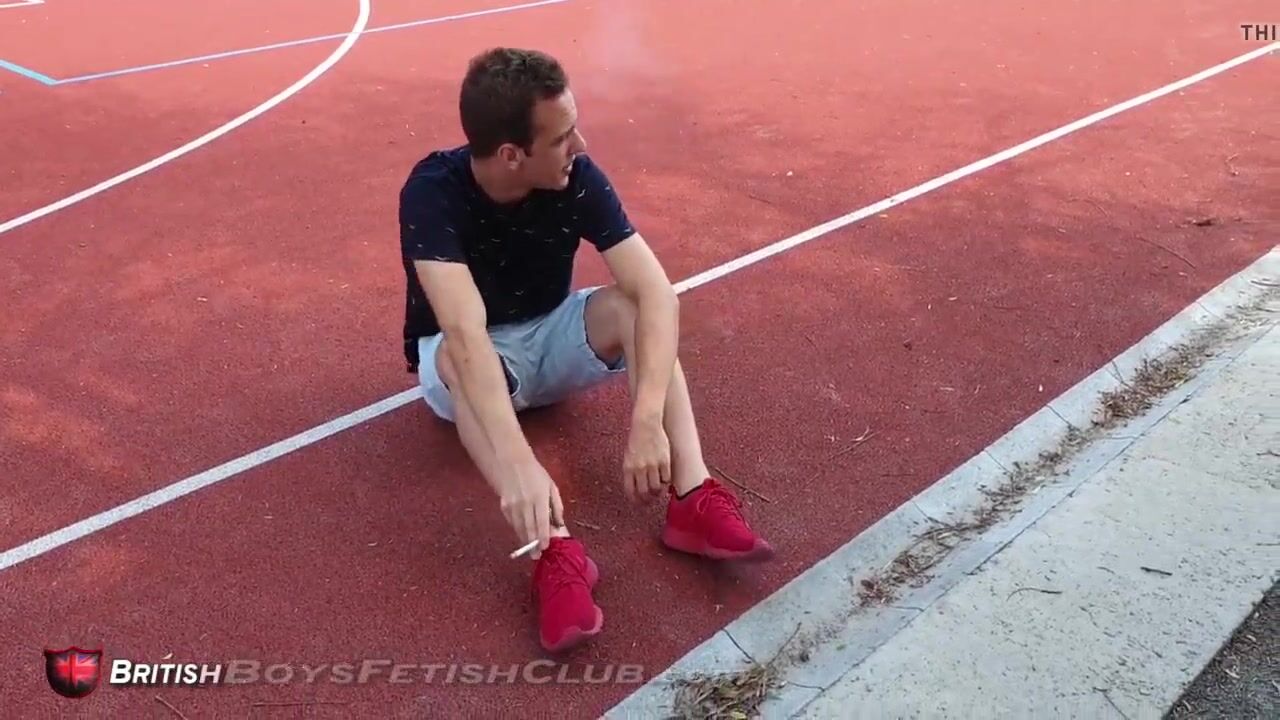 Seb gets caught and spanked on a basketball court for smoking. Ryan pushes the lad roughly down into a kneeling position and sets about spanking him.