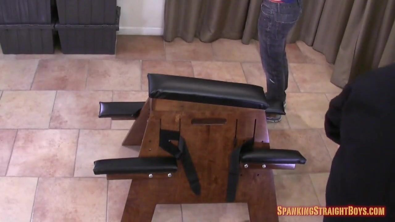 Straight boy Chris and his bubble butt return for a harsh session strapped to the spanking bench.
