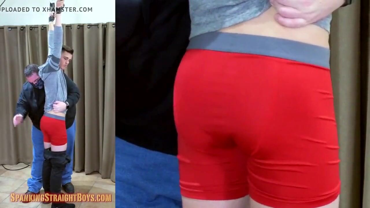 Owen is suspended by his wrists for a hard spanking and paddling.