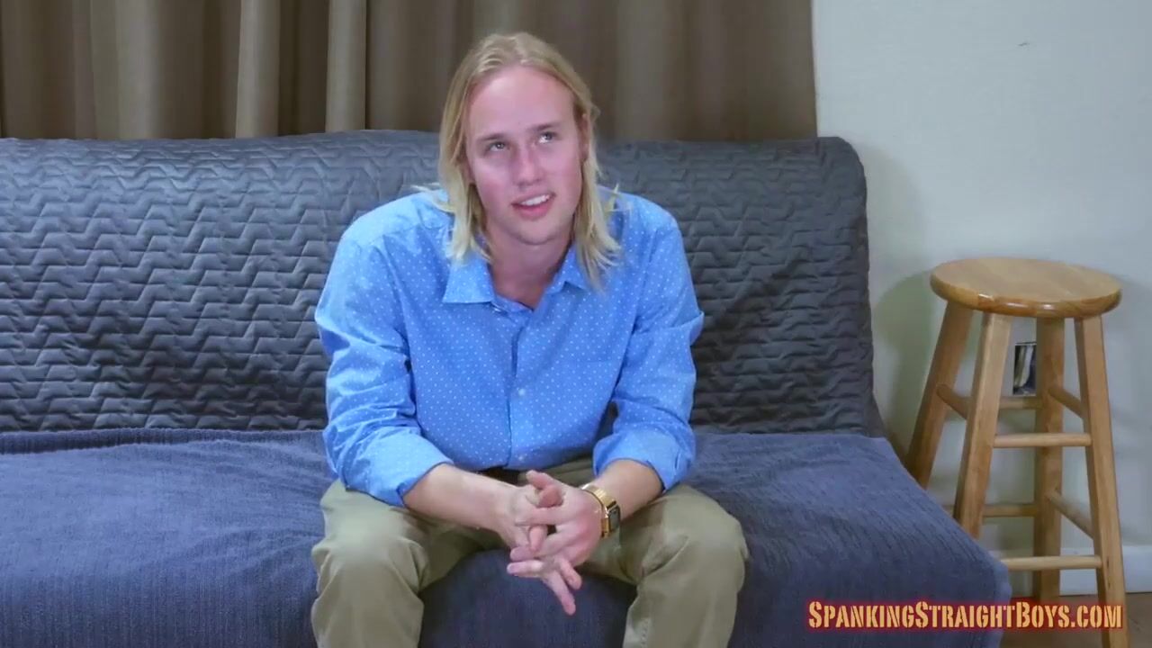 Hot blonde surfer boy Kirk goes over a man's knee for the first time.