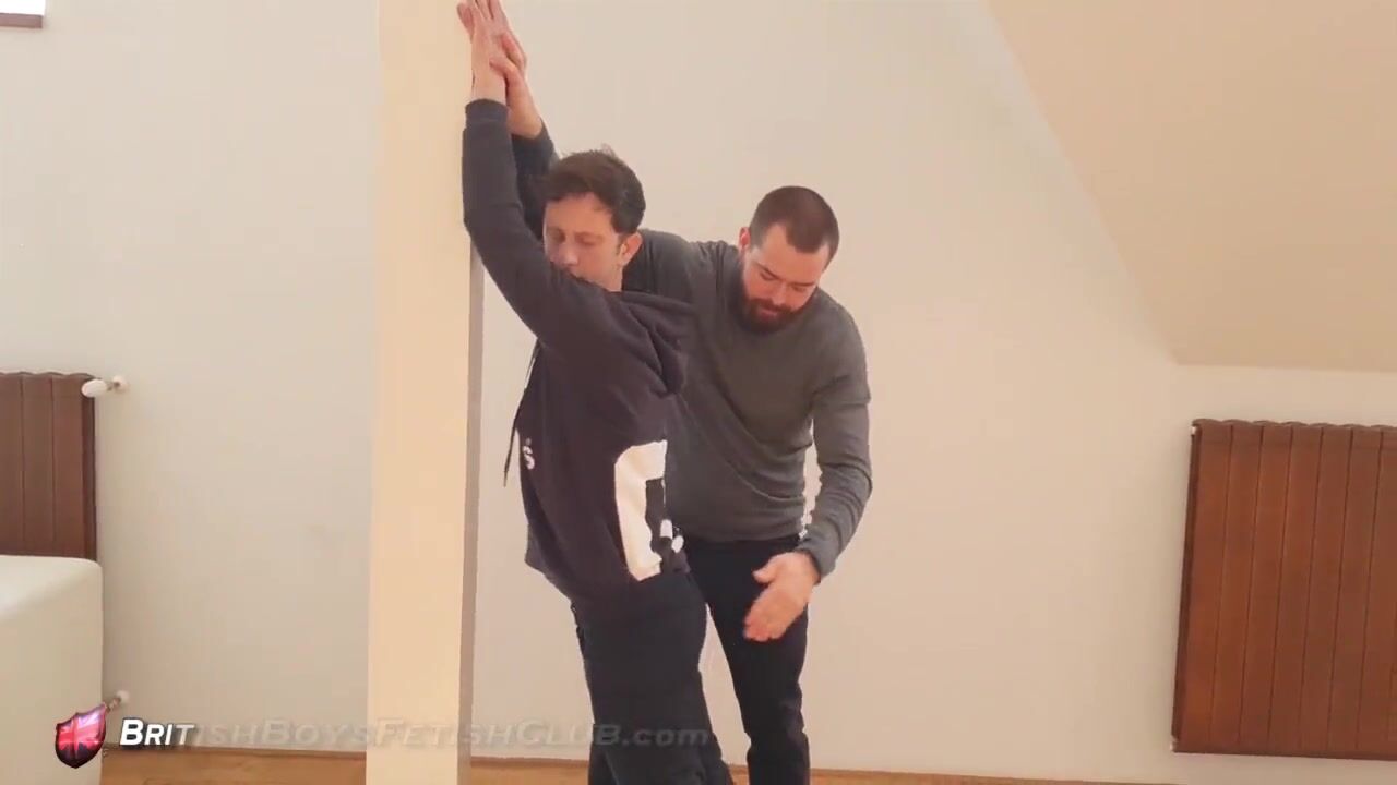 Hynek is made to stand leaning against the post, the punishment spot for many lads, and take his spanking. Boxers down and his super butt is already showing a nice colour and a delightful wobble.