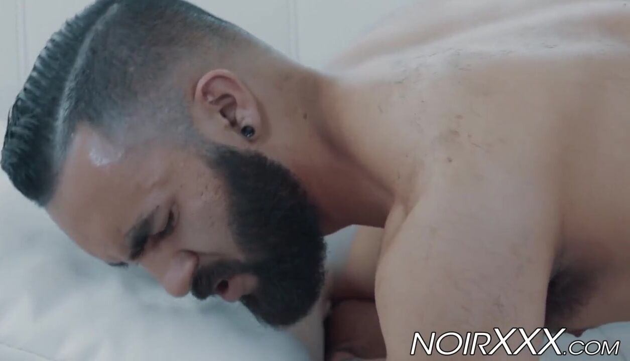 Muscular black gay ass destroys hunky bearded white stud