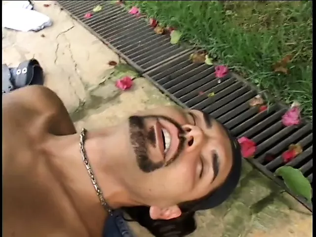 Guy gets his chest creamed after taking dick in his ass and mouth fucking