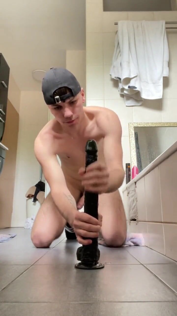 Cute Gay Twink Play with a Monster Dildo and Suck It