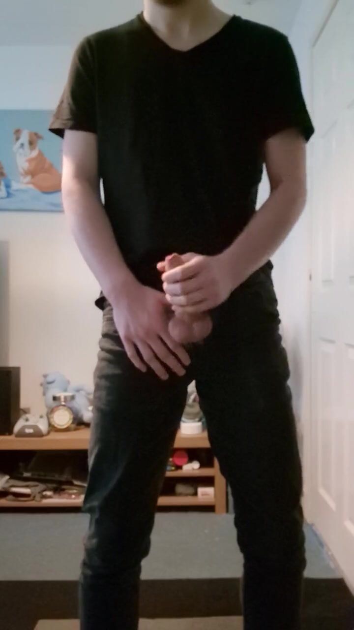 White uncut britiah guy wanking in black jean until completion
