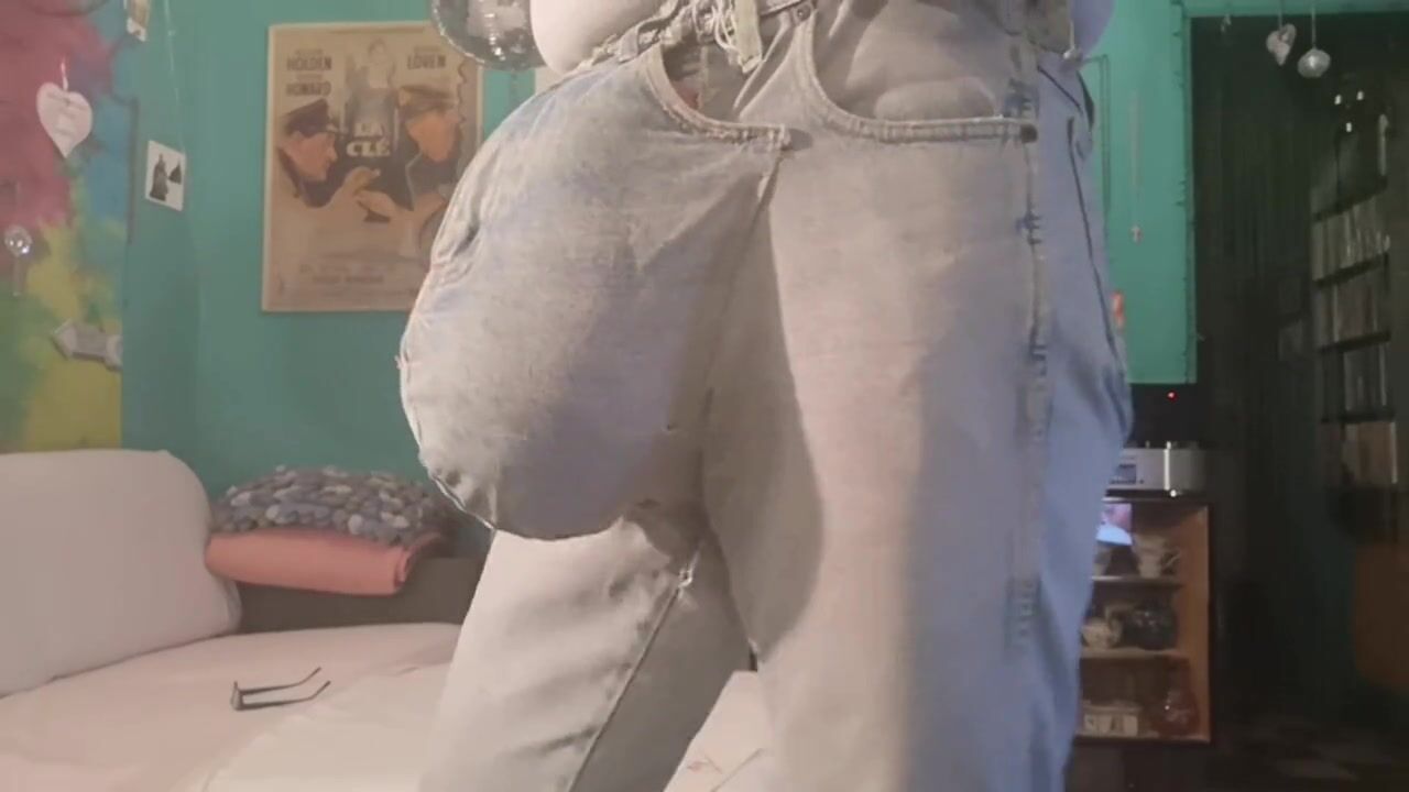My silicone filled genitals in obscene big bulging jeans, the jeans was handmade by philmore