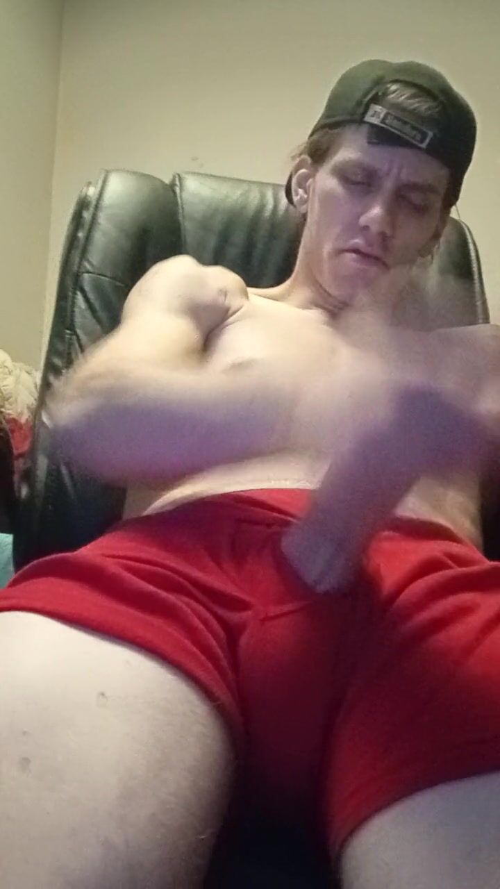 Sunnys hard cock showing threw his boxers and Jerking his thick fat cock into he explodes all over the place.