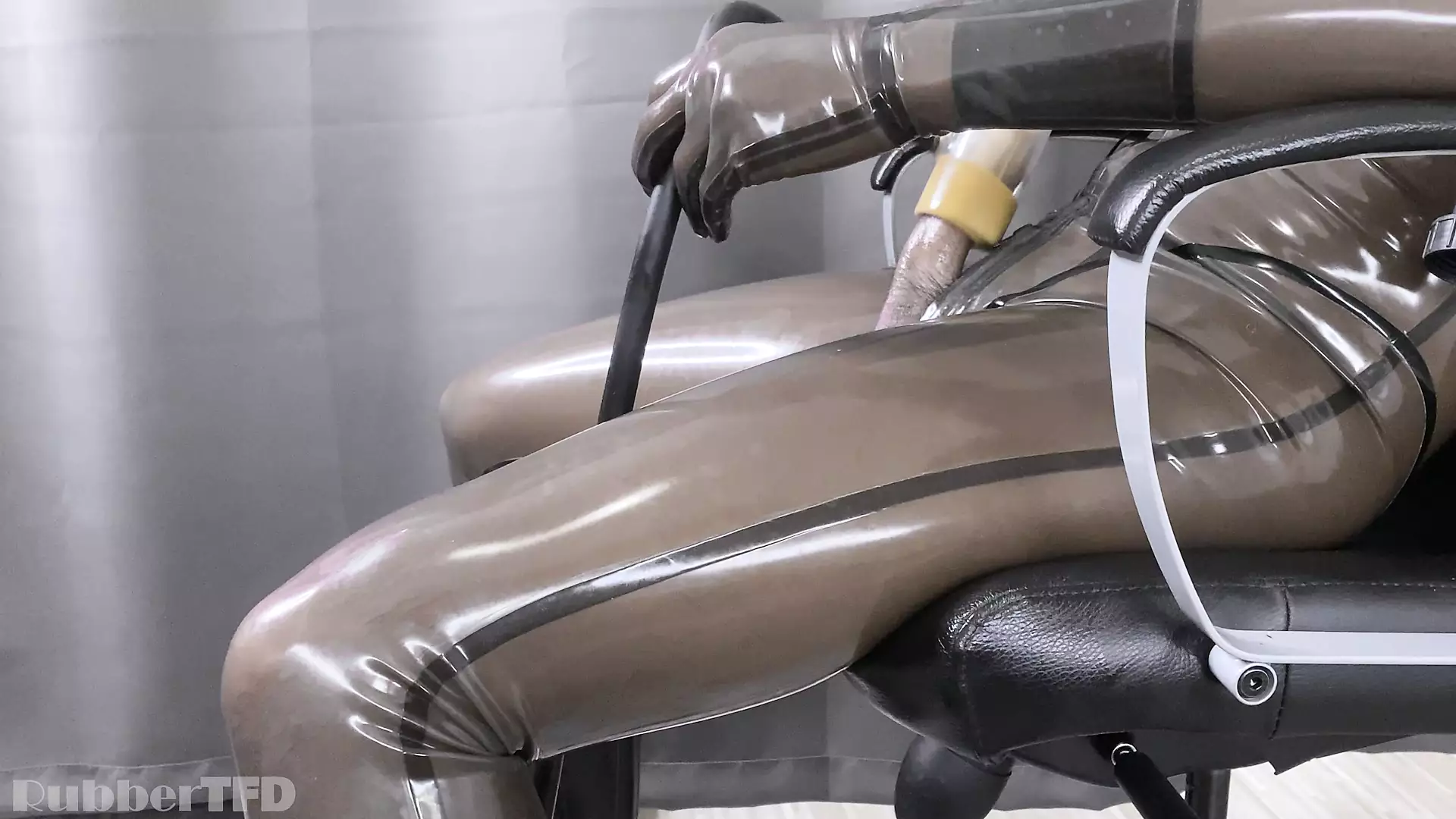Home alone being a drone, wearing the brand new transparent latex suit and trying on different masks surrounded by machines
