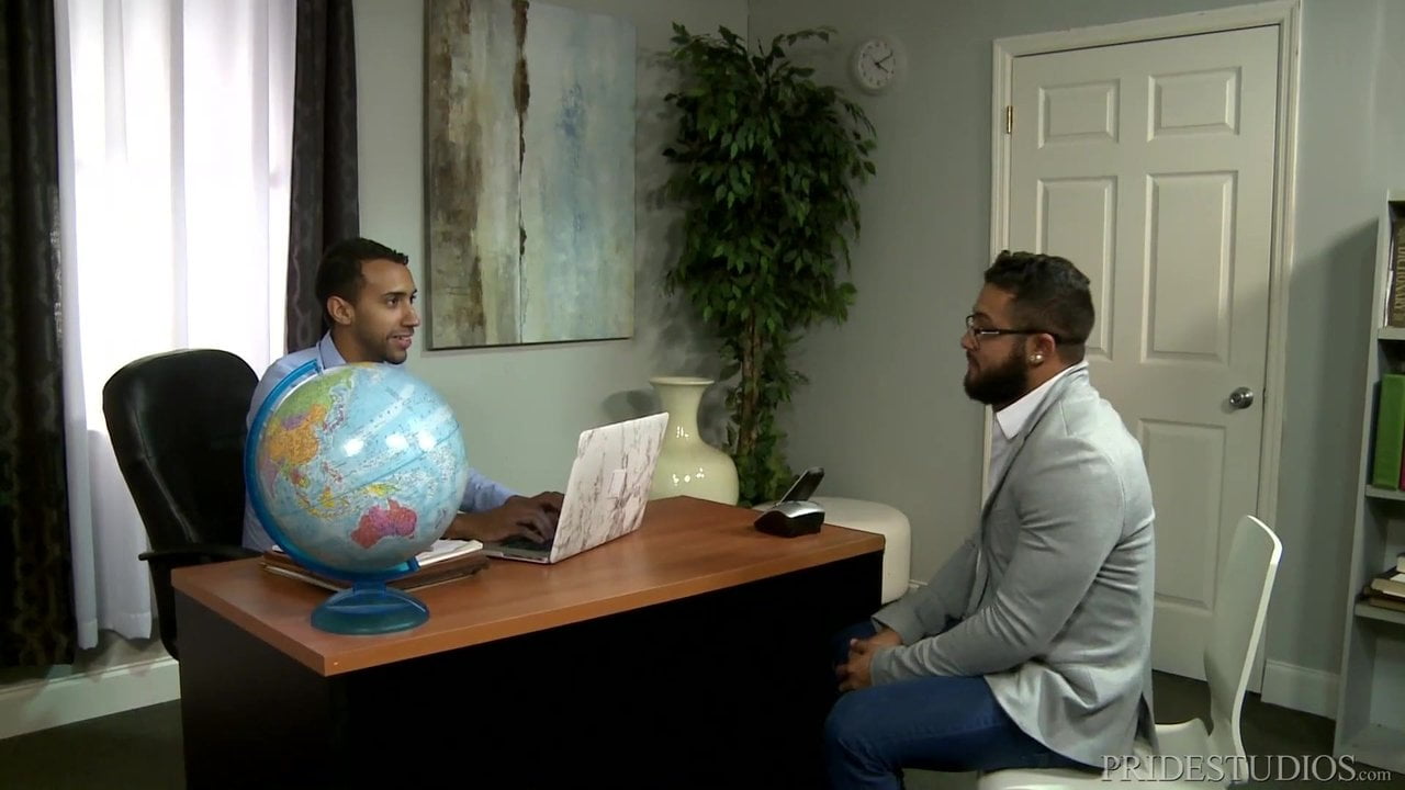 Mario Cruz & Jay Alexander met about a work project. He admits not speaking Spanish & Mario offers to teach him the language & much more. They suck each other's cocks, he eats Jay's ass & fucks him.
