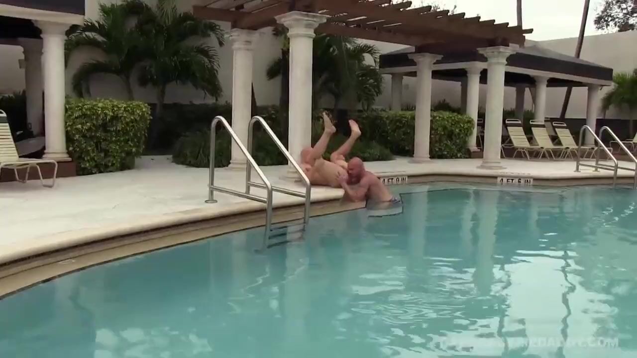 Cole Sexton is at the pool and admiring not daddy Chad Brock. This is not lost on Chad, who quickly moves in for a chat. Introductions quickly turn to cock sucking, as Chad goes down on his new found younger friend. He moves from cock sucking to ass rimming, before letting his bottom suck the dick that will soon be fucking him. Rock hard and ready, Chad slides in and barebacks Cole in several positions, as we enjoy some great close-ups of the anal action. Cole cums, while getting fucked on his back and Chad follows. Then he pushes back in and breeds his pool-side bottom.