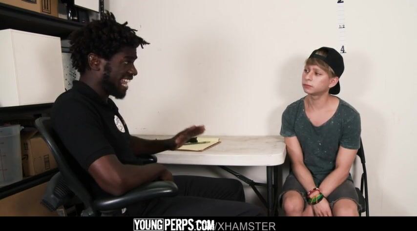 After detaining an obnoxious teen for cat-calling women on store property, our hung Loss Prevention Officer teaches the troublemaker a lesson with his giant cock.