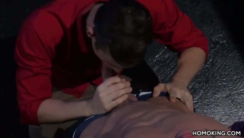 Trading places, JJ pulls out Jacob's uncut rod and gives him some oral pleasure in return. JJ's back leaning against the wall and strokes his girthy member as Jacob licks JJ's balls.