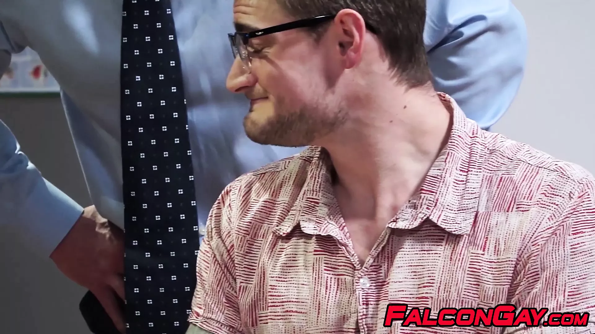 Muscular professor blowing young horny nerds big fat cock and in returne nerd barebacks his professors hole on the table after class!
