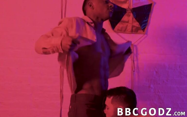 Big black hunk dominates a handsome gay into sucking his huge dick and taking it in the ass raw.