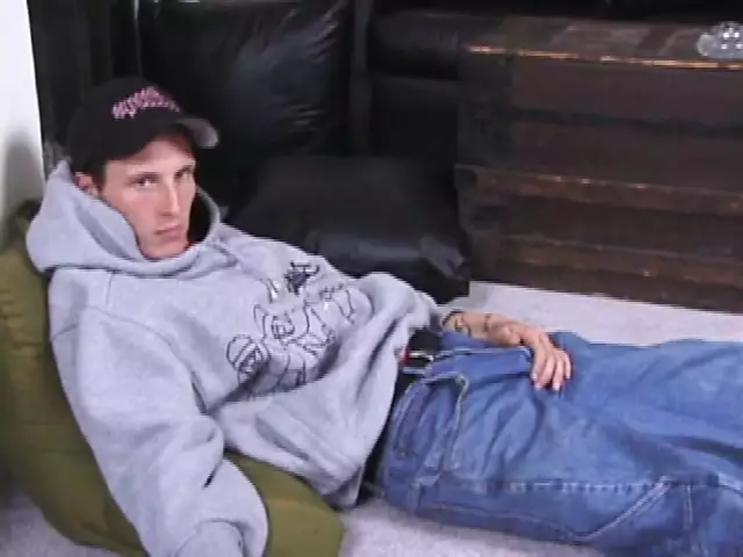Seth sits on the floor with a porn video playing, and rubs his dick through his pants until the zipper is about to bust open. He unbuckles, releases his snake, shakes it around for the camera, and grabs the lube. Seth strips off his sweatshirt, pulls down his pants and makes some sloppy wet jerk off noises, as he pounds all the way to climax. The solo is followed by a quick interview in the shower, as Seth soaps up and washes all the cum from his chest.