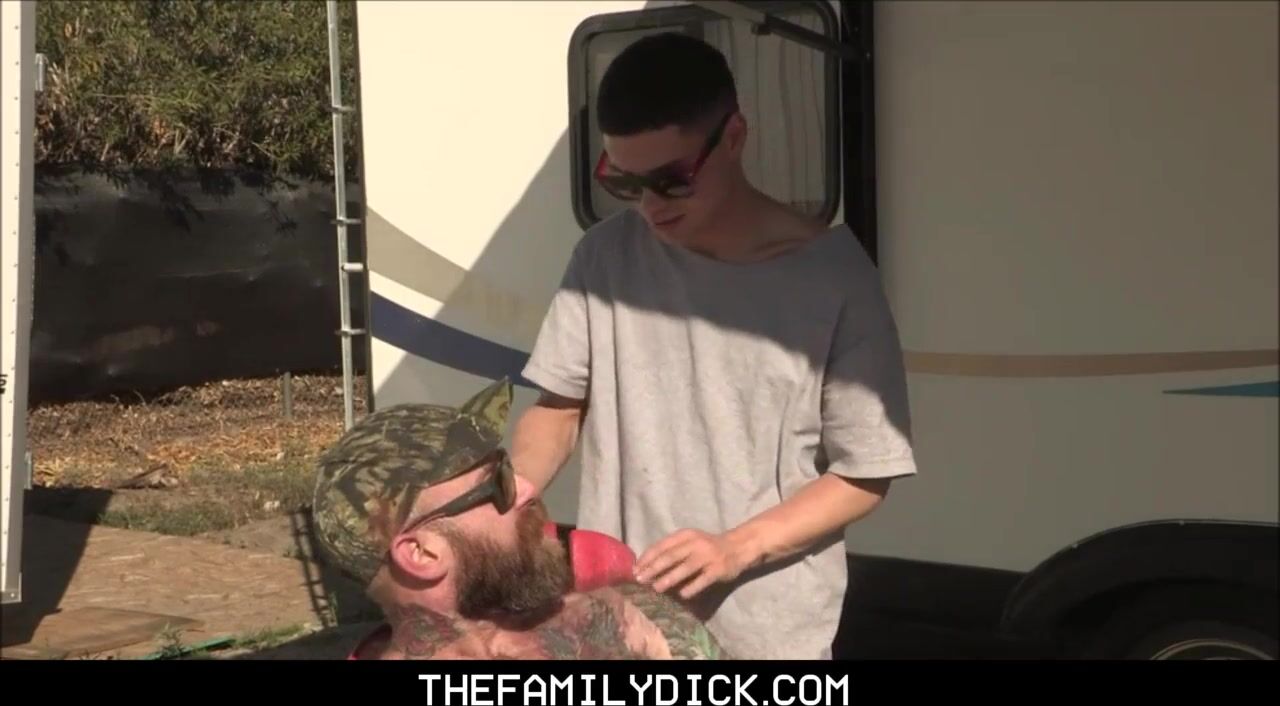 Young FamilyDick Boy Stepson Fucked By Muscle Bear Stepdad Outdoors In Trailer Park