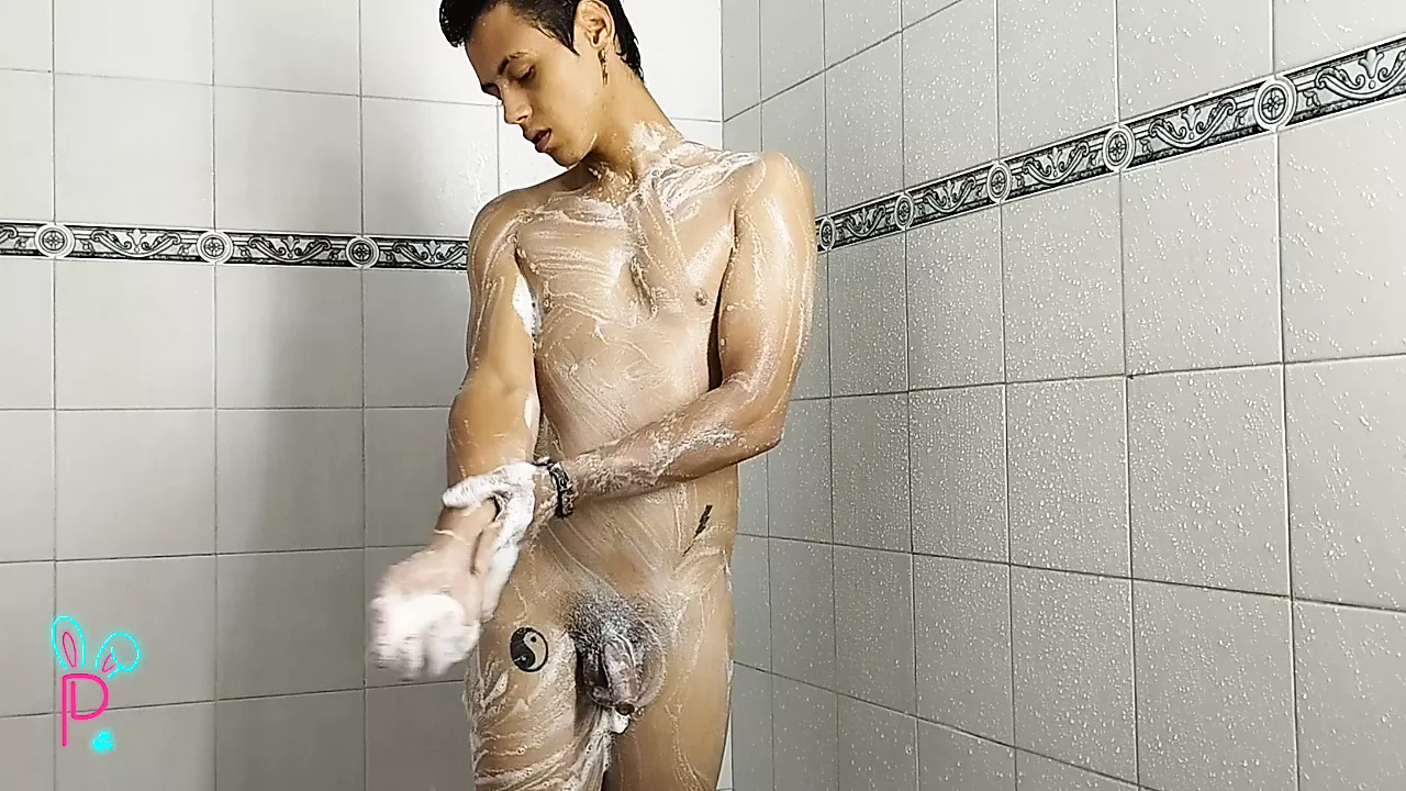 HETEROSEXUAL VEGON AND MUSCULAR BOY TAKES A SHOWER WITH FOAM