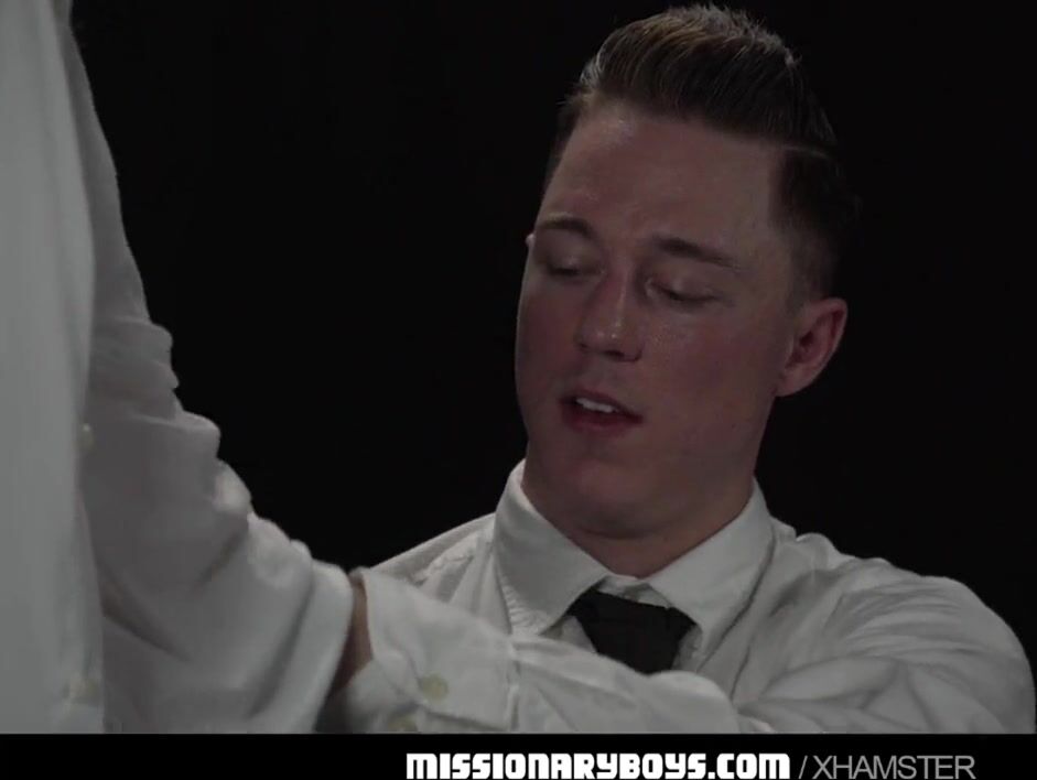 A dirty priest punishes a young missionary boy using a new technique. The boy surrenders his tight, puckering asshole and takes a bareback pounding that ends in a splash of cum all over his toned body