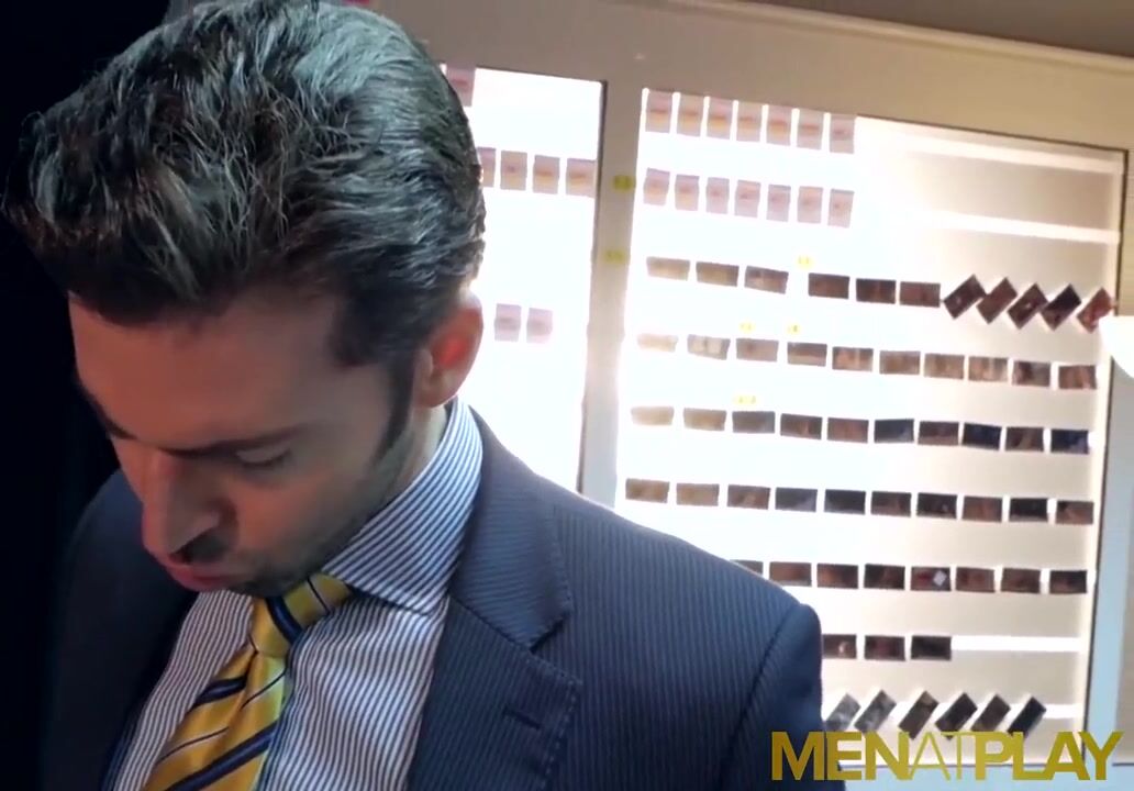 Huge suited businessman Gabriel Lunna seduces submissive colleague Dario Beck into having mutual anal sex in office!