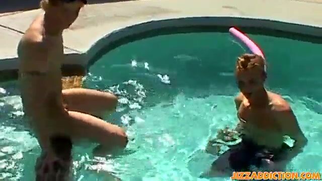 Pool day turns into twink anal threesome