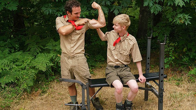 Scout Leader Greg McKeon Helps Skinny Twink Boy Work On His Еndurance Outdoors - Boys At Camp