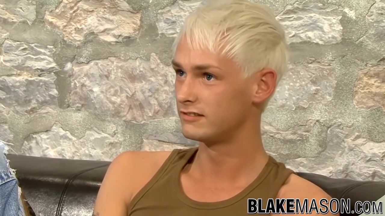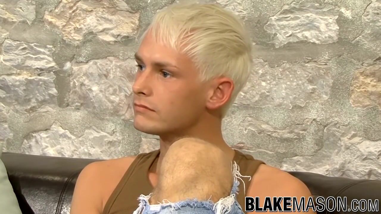 Tattooed twink Theo stroking hard big dick solo masturbation