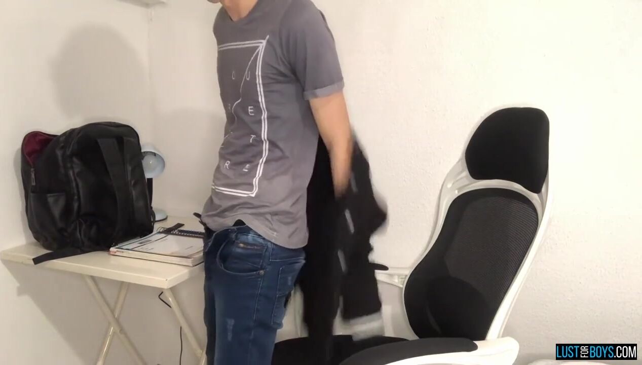 Cute Henry Evans cums on his homework while jerking solo