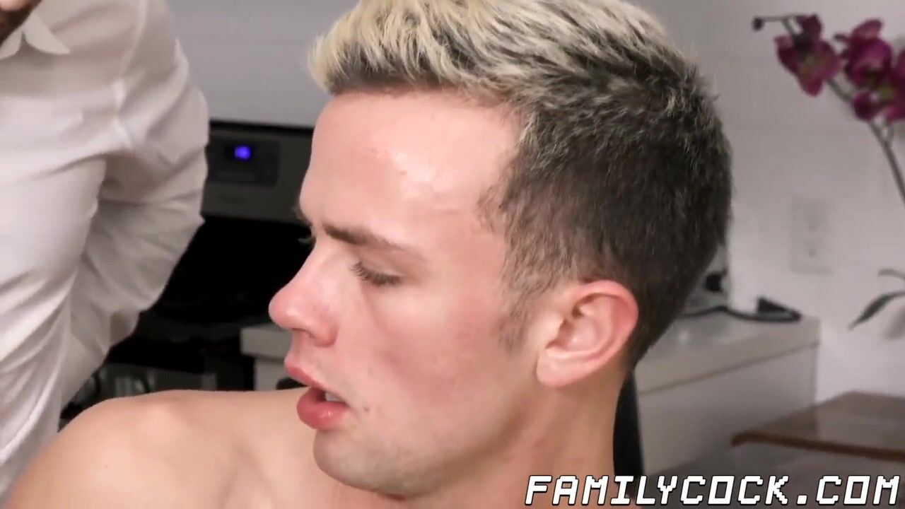 The only thing you can do with a gay stepson who's cumming in the kitchen is some big cock bareback discipline!